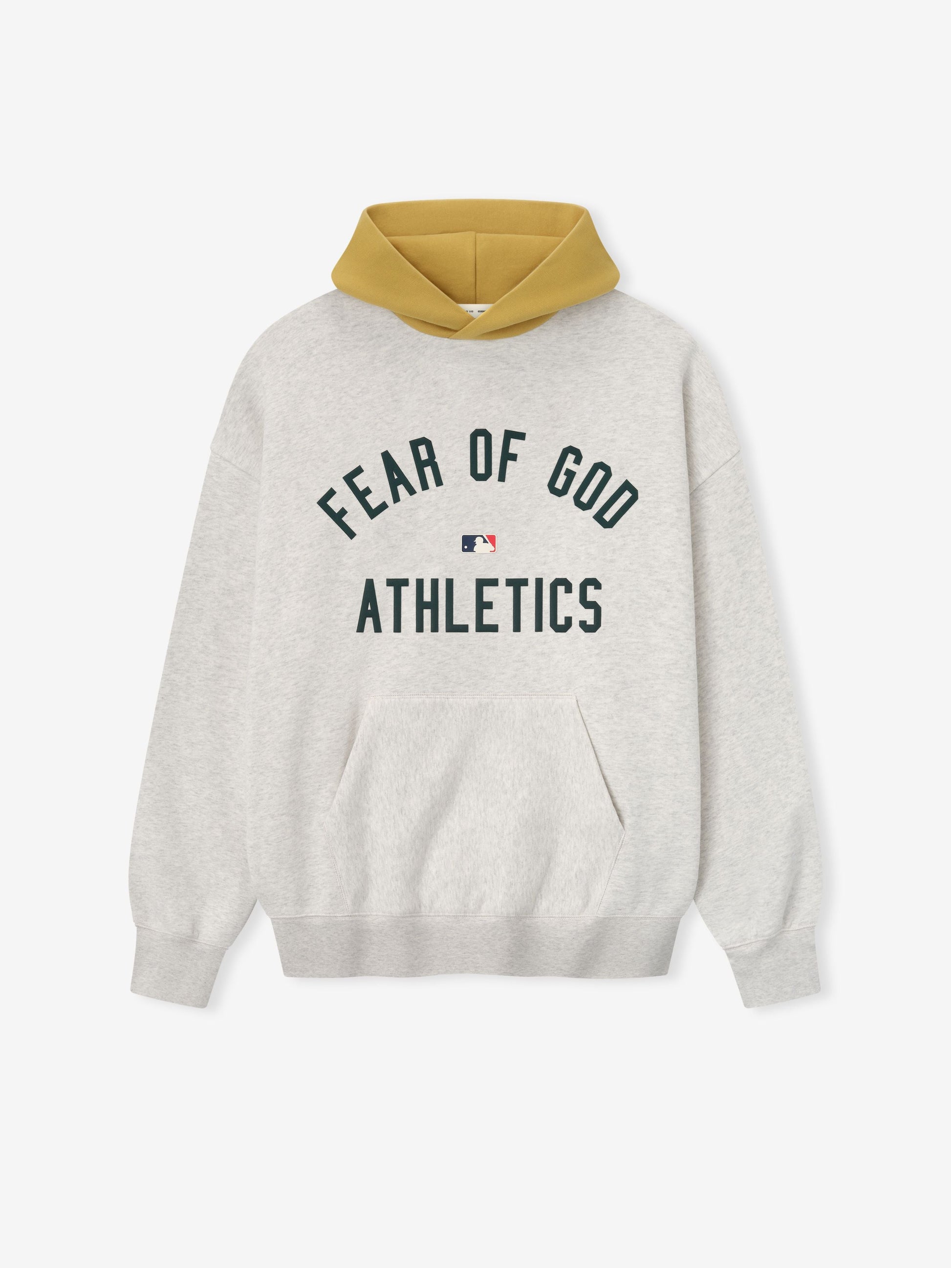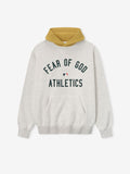เสื้อฮู้ดกีฬา Athletics ผลิตจากผ้าฟลีซเนื้อนุ่ม ให้ความสมดุลระหว่างความนุ่ม โครงสร้าง และความสบายที่ยาวนาน ตัดเย็บในทรงสปอร์ตที่ผ่อนคลาย สวมใส่สบายยิ่งขึ้นผ่านตัวเสื้อและความยาวที่ยาวกว่าเมื่อเทียบกับทรงคลาสสิกของ Essentials ด้านหน้ามีกราฟิกพิมพ์พองหนา "Fear of God Athletics" ควบคู่ไปกับตราสัญลักษณ์อย่างเป็นทางการของ MLB ด้านหลังตกแต่งด้วยโลโก้ Athletics ของแท้ จุดเด่นเพิ่มเติม ได้แก่ ฮู้ดสีตัดกัน กระเป๋าจิงโจ้ ถักขอบที่ปลายแขนและชายเสื้อด้วยผ้าริบ ฮู้ดตกแต่งด้วยป้าย Fear of God Essentials เคลือบยางอันเป็นเอกลักษณ์