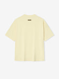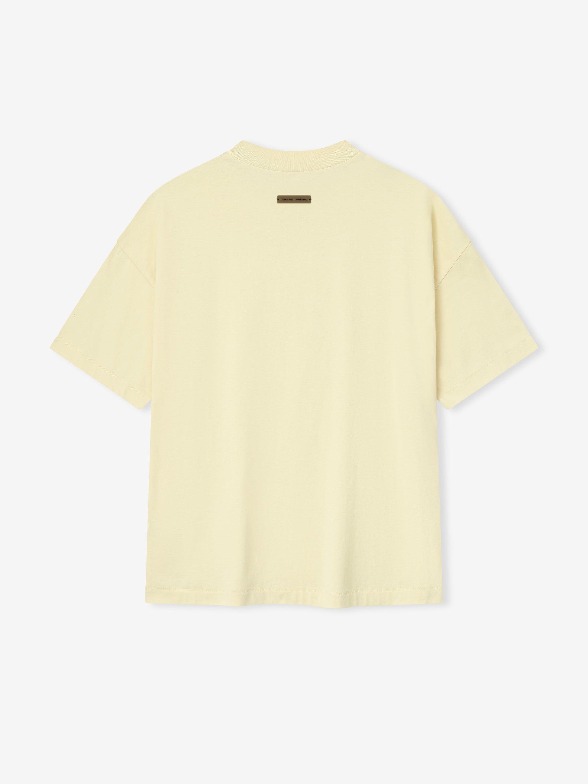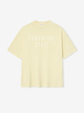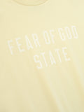 เสื้อยืดยุค 90 ผลิตจากผ้าเจอร์ซีย์คอตตอน 100% น้ำหนักปานกลาง เสื้อยืดคอกลมทรงหลวมสไตล์ยุค 90 มาพร้อมดีไซน์ไหล่ตก ด้านหน้าสกรีนโลโก้ "Fear of God State" และป้าย Fear of God Essentials แบบเคลือบยางที่คอเสื้อด้านหลัง