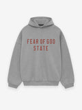 เสื้อฮู้ด Essentials Fleece Hoodie ได้รับการอัพเกรดด้วยเนื้อผ้าฟลีซแกนหนา 480 กรัม/ตร.ม. เพื่อเสริมรูปทรงและโครงสร้าง ด้านหน้าพิมพ์ลายกราฟิก "Fear of God State" ที่ได้รับแรงบันดาลใจจากนักศึกษา ดีเทลประกอบด้วยเสื้อฮู้ดคอซ้อน แขนเสื้อถักริบ ชายกระโปรง และกระเป๋าข้าง ป้ายยาง Fear of God ของ Essentials อยู่ที่คอเสื้อด้านหลัง