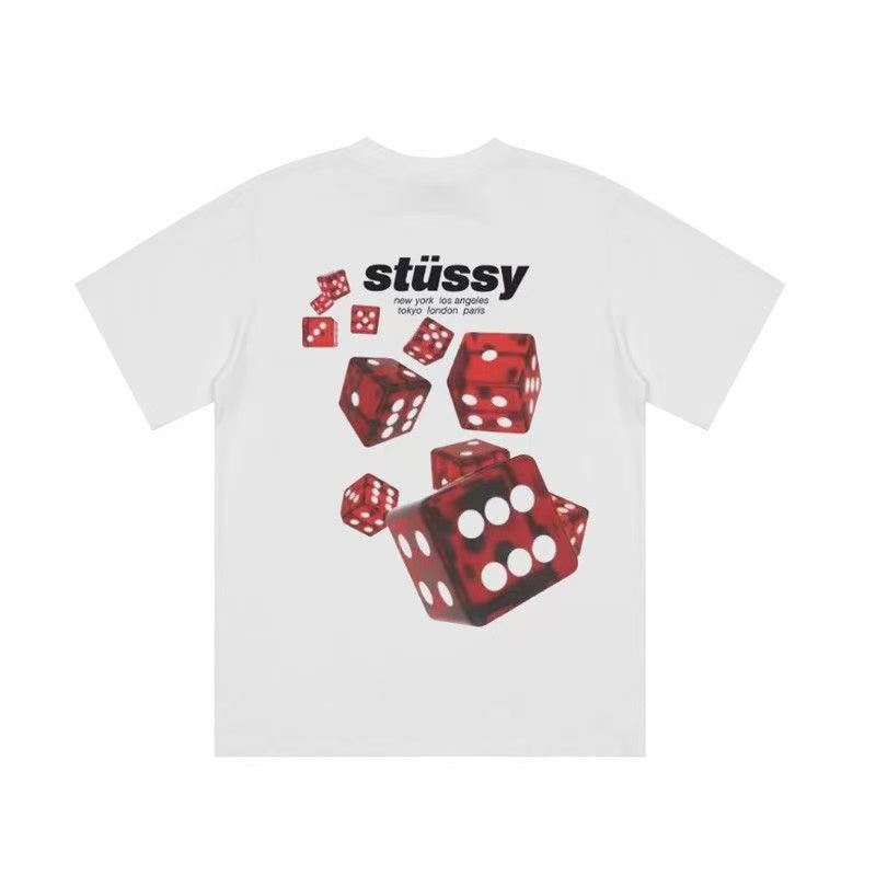 Stussy SS25 ROLLERS TEE Dice Print Pattern Ribbed Crew Neck Short-Sleeve T-Shirt Unisex
